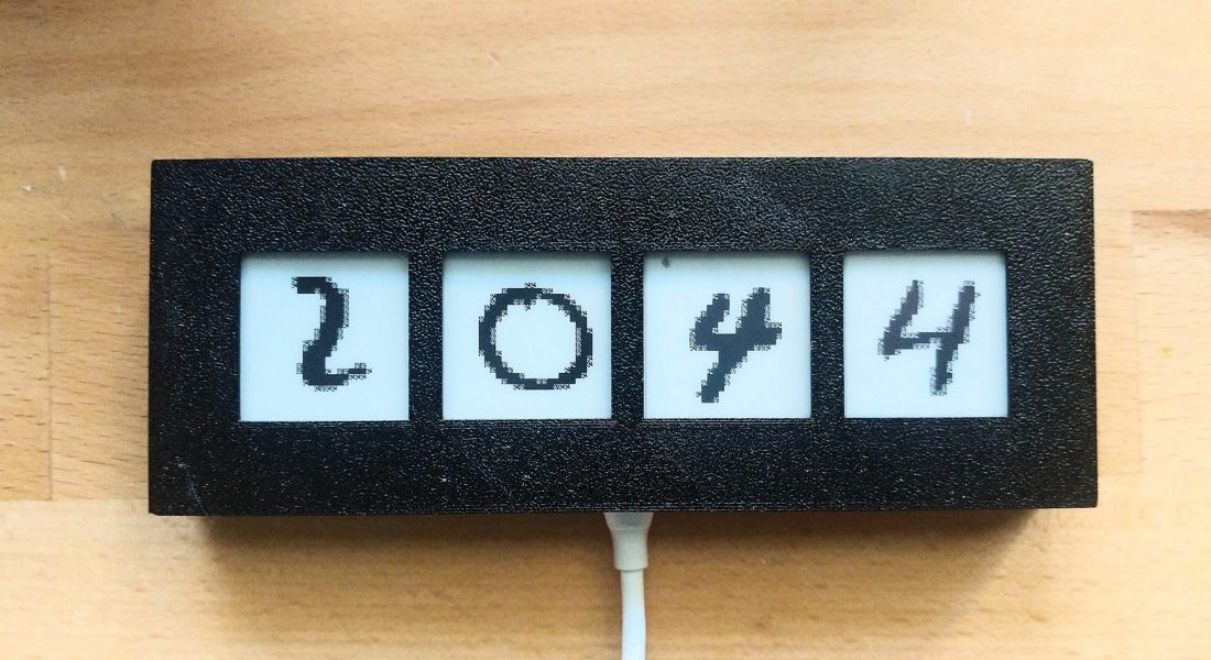 Dheera Venkatraman kwam op het idee om een klok te maken die met willekeurige cijfers uit de MNIST-dataset het uur toont. Als het bijvoorbeeld 20:44 is, pikt de klok een willekeurig handgeschreven cijfer uit de dataset dat 2 voorstelt, een dat 0 voorstelt, en twee willekeurige die 4 voorstellen. Elk cijfer wordt op een afzonderlijk 1,54″ e-inkscherm van Waveshare weergegeven, en de vier schermen worden door een TinyPICO-ontwikkelbordje met esp32-microcontroller aangestuurd, die de huidige tijd via ntp ontvangt. Het geheel werkte Dheera netjes af in een 3d-geprinte behuizing. Met zo’n klok is geen enkel tijdstip nog hetzelfde…